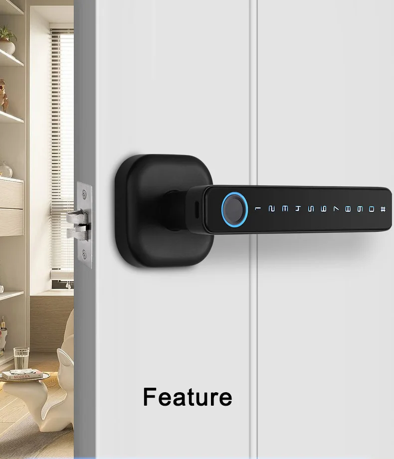 Secure your space with this high-tech single latch deadbolt lock. Featuring fingerprint recognition, password access. Providing multiple keyless entry options for convenience and safety. Ideal for indoor use, it’s designed for both wooden and metal doors. Easy to install and secure against unauthorized access, this lock combines advanced technology with everyday practicality.